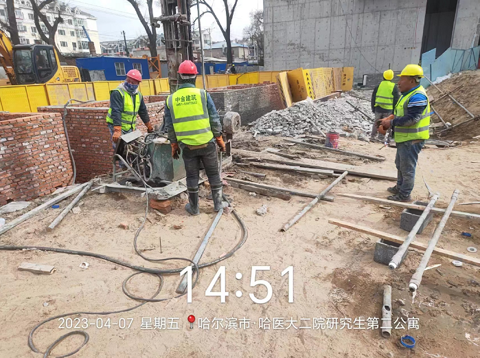 我公司與中國建筑第二工程局合作中日友好醫(yī)院項目的基礎加固工程,采用高壓旋噴樁法對基礎進行加固,于2023年3月27日進場,現(xiàn)在正在施工。