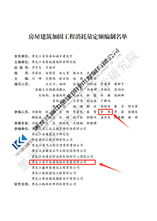 我司參編《黑龍江省建設工程計價依據(房屋建筑加固工程消耗量定額)》(HLJD-JG-2023)
