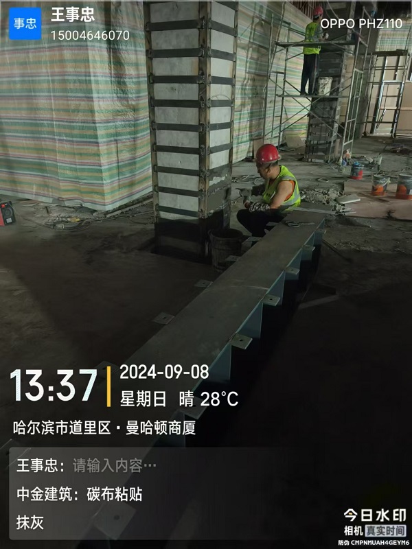 本項(xiàng)目位于哈爾濱市道里區(qū)透籠街58號(hào)曼哈頓商城,我公司在9月25號(hào)得到中標(biāo)通知,在9月28日組織我公司技術(shù)人員和施工人員進(jìn)出開始施工,根據(jù)圖紙和甲方要求,選用優(yōu)質(zhì)加固材料,并根據(jù)我公司施工項(xiàng)目管理辦法開展施工現(xiàn)場(chǎng)文明施工布置,施工區(qū)域清理。從而保證施工區(qū)域干凈整潔,同時(shí)組織專業(yè)施工人員開展各項(xiàng)施工工作。