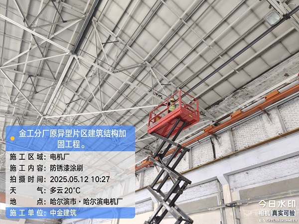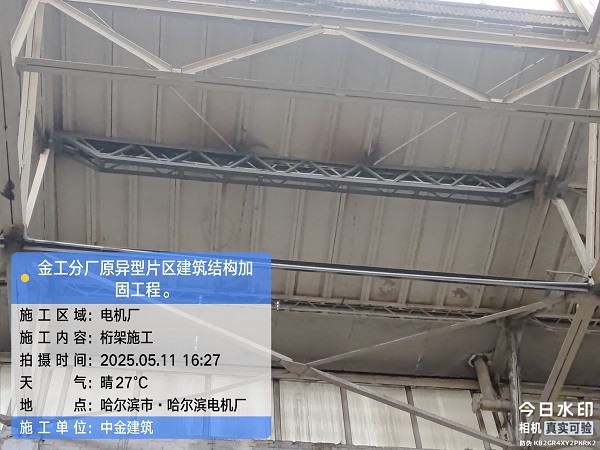 我單位承建的金工分廠(chǎng)原異型片區(qū)加固工程正在施工中,本項(xiàng)目主要涉及屋面鋼桁架加固、柱加大截面、承重墻加固等施工工藝。