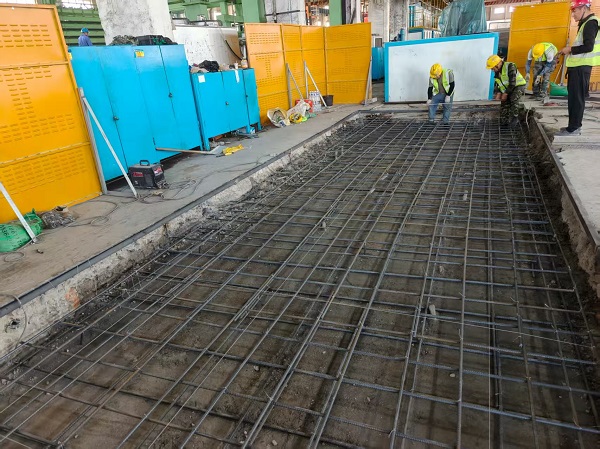 本次工程主要包括混凝土基礎(chǔ)拆除,土方開發(fā)外運,鋼筋綁扎,預(yù)埋件安裝,混凝土澆筑,灌漿料澆筑,環(huán)氧地坪漆施工等。本次工程將嚴格執(zhí)行標準化流程,采用機械化拆除混凝土基礎(chǔ),精準控制土方開挖標高,鋼筋綁扎符合GB50204規(guī)范,預(yù)埋件定位誤差≤2mm,并采用C30商砼分層澆筑確保密實度。后續(xù)將進行灌漿料補強及耐磨環(huán)氧地坪施工,全程實施三級質(zhì)檢制度,確?;A(chǔ)承載性能與設(shè)備安裝要求完美匹配。