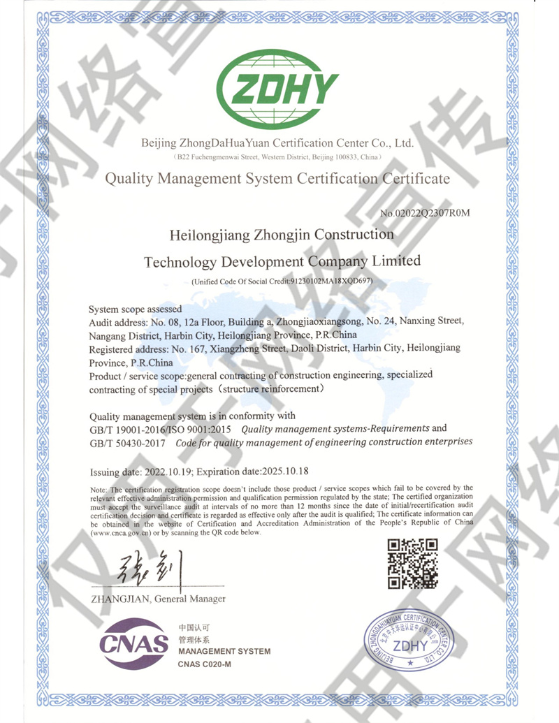 中金建筑首頁(yè) / 加固改造案例 / 新建工程案例 / 加固改造方法 / 行業(yè)新聞資訊 / 中金業(yè)務(wù)范圍 / 資質(zhì)榮譽(yù)證書(shū) / 聯(lián)系中金建筑