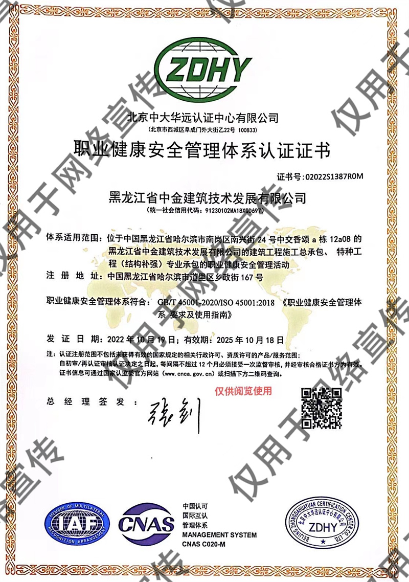 2022年9月27日到2022年10月7日期間由三位審核組老師對我公司進(jìn)行全面審核,我司也積極配合老師對我司辦公情況及以往項(xiàng)目和在建項(xiàng)目的考察,并于2022年10月19日我司三體系認(rèn)證通過并下發(fā)證書,IS09001、IS014001、OHSI8001體系的認(rèn)證是被世界多數(shù)企業(yè)所接受,是在開展質(zhì)量、職業(yè)健康安全和環(huán)境工作方面的綱領(lǐng)性指導(dǎo)文件,是我司參與國際貿(mào)易、提高自身競爭的自覺要求,也是遵法守信、誠實(shí)負(fù)責(zé)的體現(xiàn)形式,并通過體系的持續(xù)運(yùn)行不斷提升各項(xiàng)管理水平,我司也將繼續(xù)努力達(dá)到多途徑、多元化、多樣化式發(fā)展,為你的結(jié)構(gòu)安全保駕護(hù)航。